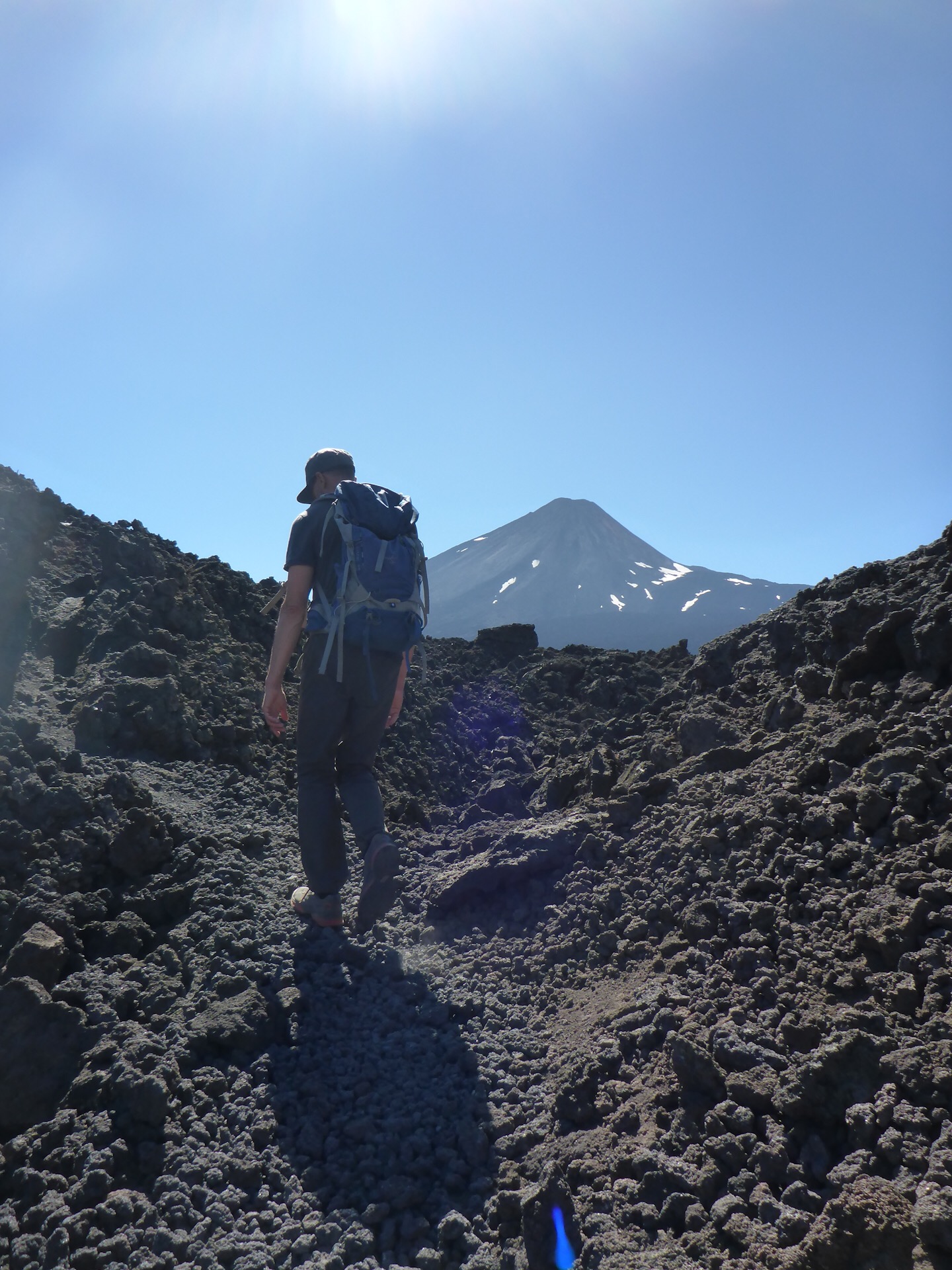 Von der Öffentlichkeit unbemerkt haben wir die mathematische Mitte unserer Expedition erreicht und entsprechend gefeiert. Doch was wäre ein Bergfest ohne Berge? Zum Feiern haben wir uns den »Parque Nacional Las Lajas« mit dem Volcán Antuco ausgesucht. Dieser Nationalpark ist zwar nicht so bekannt wie einige der vormals besuchten, aber besticht durch eine einzigartige, seltene Vegetation in einer rauen Landschaft, die sich nach einem Vulkanausbruch gebildet hat. Der ist zwar schon über 150 Jahre her, dennoch dürfte sich die Kulisse prima für einen Film über das Leben auf dem Mond eignen. Das Gestein ist schwarz und trocken und fühlt sich an wie Schlacke; wahrscheinlich weil es eben keine Feuchtigkeit speichert, ist die Gegend für Pflanzen richtig unattraktiv. Dort aber, wo das Wasser der Gletscherflüsse, die die Lavafelder unterirdisch passieren, wieder ans Tageslicht treten, explodiert die Vegetation förmlich und besticht durch eine farbige Fröhlichkeit ohnegleichen.